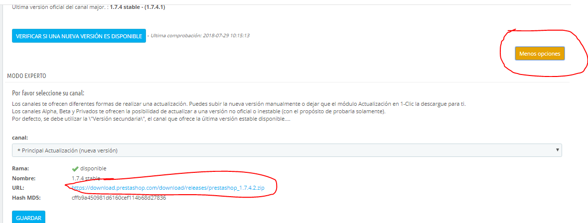 " Congratulations, you are already using the latest version available! " siendo que tengo la versión 1.7.4.1 y por lo que reviso esta la versión 1.7.4.2