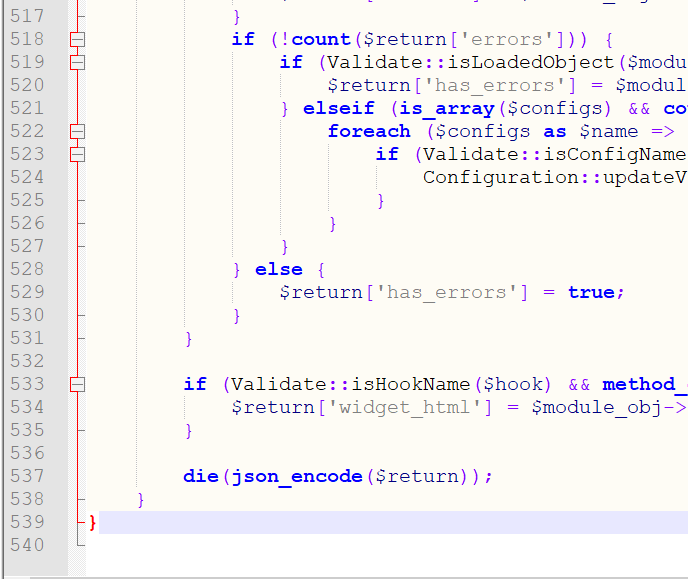 FORMATU Posted July 30, 2018 Author Share Posted July 30, 2018 (edited) Bonjour, Du nouveau, j'ai activé le mod_dev et voici ce que j’obtiens : Whoops, looks like something went wrong. 1/1 FatalErrorException in AdminDashboardController.php line 539: Compile Error: Declaration of AdminDashboardControllerCore::setMedia() must be compatible with AdminControllerCore::setMedia($isNewTheme = false) in AdminDashboardController.php line 539 Je viens de vérifier que tous les fichiers sont exactement les mêmes sur les deux sites et que sur la ligne 539 il n'y a rien : Je vous remercie de votre aide. Joao Edited July 30, 2018 by FORMATU (see edit history) Link to comment Share on other sites More sharing options...