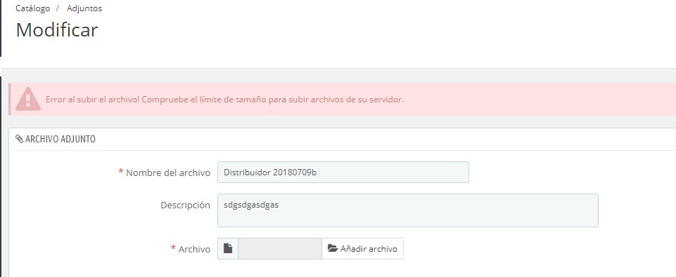 PRESTASHOP 1.6.1.12 NO PERMITE CARGAR ARCHIVOS