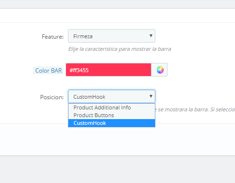albertosunlife Posted August 28, 2018 Author Share Posted August 28, 2018 En 8/8/2018 a las 3:06 PM, ventura dijo: La mejor solución es la que te indica el compañero de mas arriba, un modulo personalizado que sobreescriba la classe Features y añada un registro nuevo en la base de datos para que aplique un valor de porcentaje. Si solo lo necesitas para una característica en concreto puedes hacer un apaño, así por ejemplo en el archivo themes/classic/templates/catalog/_partials/product-details.tpl Busca esta parte {block name='product_features'} ....... ... ... {/block} y sustituyes todo el contenido por este codigo {block name='product_features'} {if $product.grouped_features} <section class="product-features"> <p class="h6">{l s='Data sheet' d='Shop.Theme.Catalog'}</p> <dl class="data-sheet"> {foreach from=$product.grouped_features item=feature} {if $feature.id_feature == 6} <div class="name_new"> <span style="margin-right:20px"> {$feature.name}</span> <progress value="{if $feature.value == 'Media'}25{elseif $feature.value == 'Intermedia'}55{else}90{/if}" max="100"></progress> <span style="margin-left:20px">{$feature.value|escape:'htmlall'|nl2br nofilter}</span></div> {else} <dt class="name">{$feature.name}</dt> <dd class="value">{$feature.value|escape:'htmlall'|nl2br nofilter}</dd> {/if} {/foreach} </dl> </section> {/if} {/block} El id_feature 6 que aparece en rojo seria el id de la característica en la que quieres que aparezca el indicador, puedes mirarlo desde el backoffice , en Catalogo /Attributes & Features/Features Luego en rojo también aparecen los valores de esa característica indicada, en este caso y a modo de ejemplo al valor Media le corresponde un valor numérico 25, a Intermedia un valor de 55 y al que queda Intermedia-alta le correspondería un valor de 90. Estos valores numéricos o de porcentaje de cada valor de característica serán los que definan la barra de progreso. El resultado seria el de la imagen adjunta Muy buenas, compañero, lo primero de todo disculparme por no haber contestado antes. Ahora que estoy de vuelta quería agradecerte mucho tu ayuda, eres un auténtico crack, esto es exactamente lo que buscaba. ¿Crees que podría colocarlo justo encima o debajo del texto de resumen de producto como en la imagen adjunta? Yo lo que he hecho es colocar una imagen en cada producto, y tengo varias hechas, según la firmeza del colchón. Ya es mala suerte que no haya ningún módulo que haga esto :/ me piden una riñonada por hacerme uno, cuando en realidad ya podría haber uno como en wordpress, que además es gratuito aixxxx Link to comment Share on other sites More sharing options...