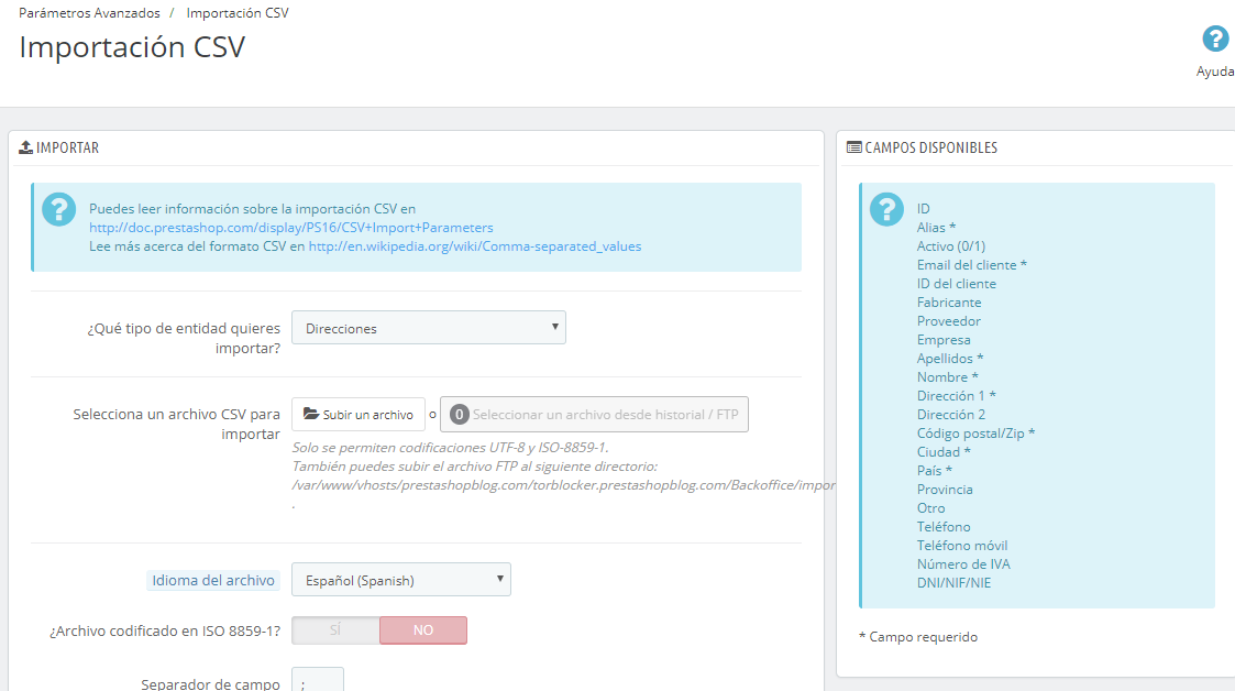 Eusebio100 Posted August 7, 2018 Author Share Posted August 7, 2018 (edited) Gracias por responder, ya sabía que está en direcciones, pero en direcciones el dni tampoco está disponible en los campos del csv a importar; está disponible en nº de iva, pero no es lo mismo. Edito: Parece que a partir de alguna versión de ps 1.6 está disponible el campo DNI, tendré que hacer un override. Edited August 7, 2018 by Eusebio100 (see edit history) Link to comment Share on other sites More sharing options...