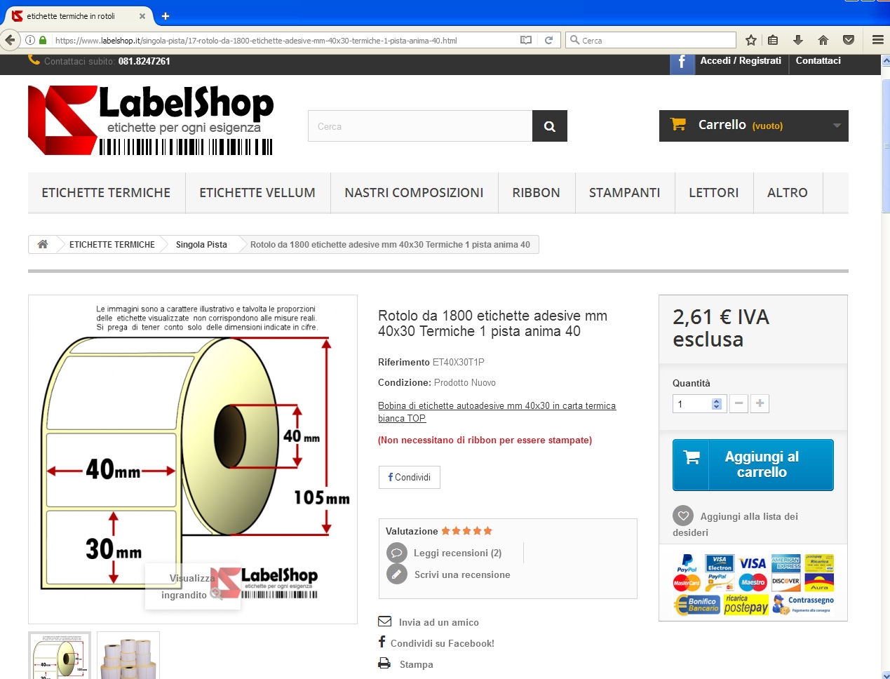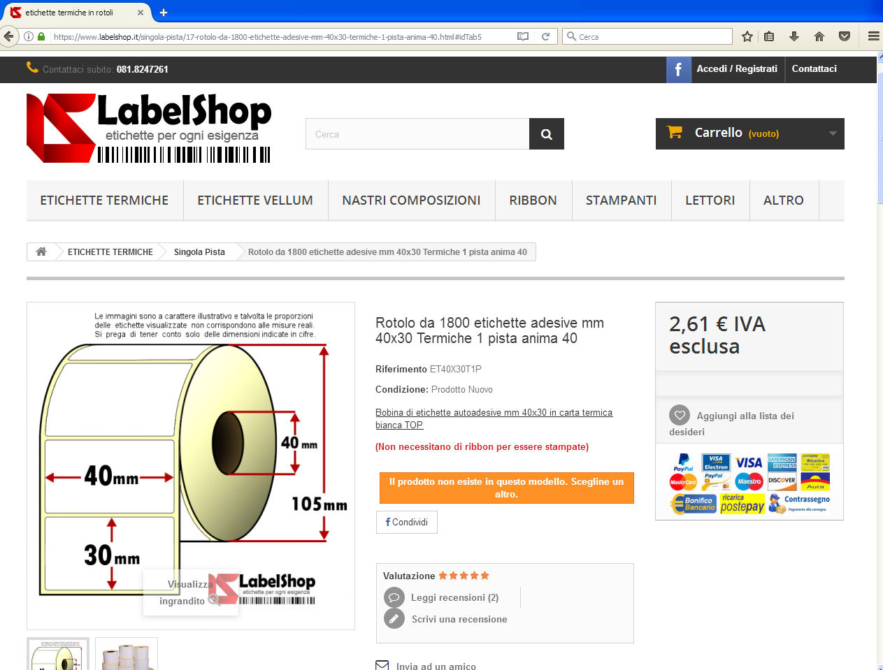 Labelshop.it Posted August 10, 2018 Share Posted August 10, 2018 Hi, I need help, Version Prestashop 1.6.1.x I encountered a problem on the product comments module (productcomments) If an article that has received comments is clicked on (LEGGI RECENSIONI) to view them, a tab #idTab5 (which should be bookmarked comments) is added in the address bar to the base URL and at the same time replaces the add to cart button with the following message:Il prodotto non esiste in questo modello. Scegline un altro. This way it does not give the possibility to add it and only if the browser refreshes the page reappears the add to cart button ... Below I write the link of my site to check the problem:https://www.labelshop.it/singola-pista/17-rotolo-da-1800-etichette-adesive-mm-40x30-termiche-1-pista-anima-40.html In the attached images there is the before and after with the problem. There is someone who can help me and give me information on how to solve thank you for help Link to comment Share on other sites More sharing options...