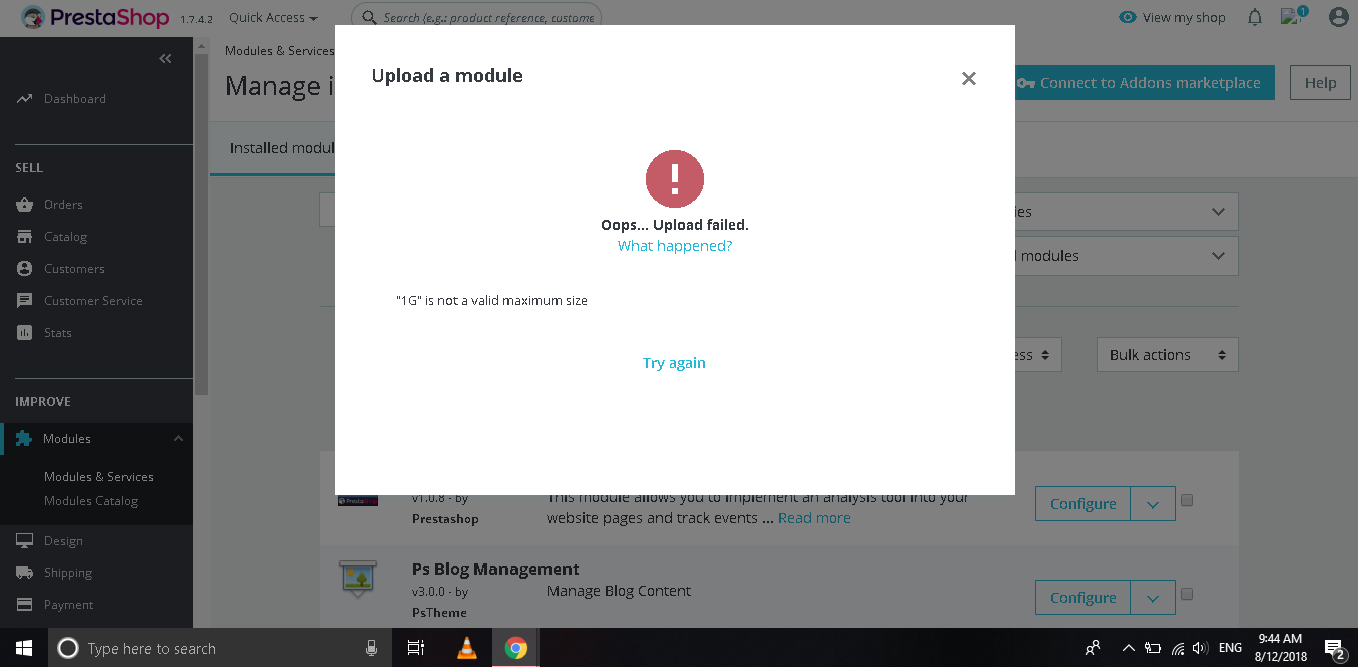 Knowband Plugins Posted August 13, 2018 Share Posted August 13, 2018 Hi, As per my understanding, It is not the standard Prestashop error. Kindly confirm if this error is coming while uploading specific module OR any module. Apart from that, You can try for manual upload. Login into the server via FTP/Control Panel & upload the module files inside module folder (via FTP). After file upload, you will be able to see the module in the backend (admin end) & then you need to install the module from the backend (admin end). Link to comment Share on other sites More sharing options...