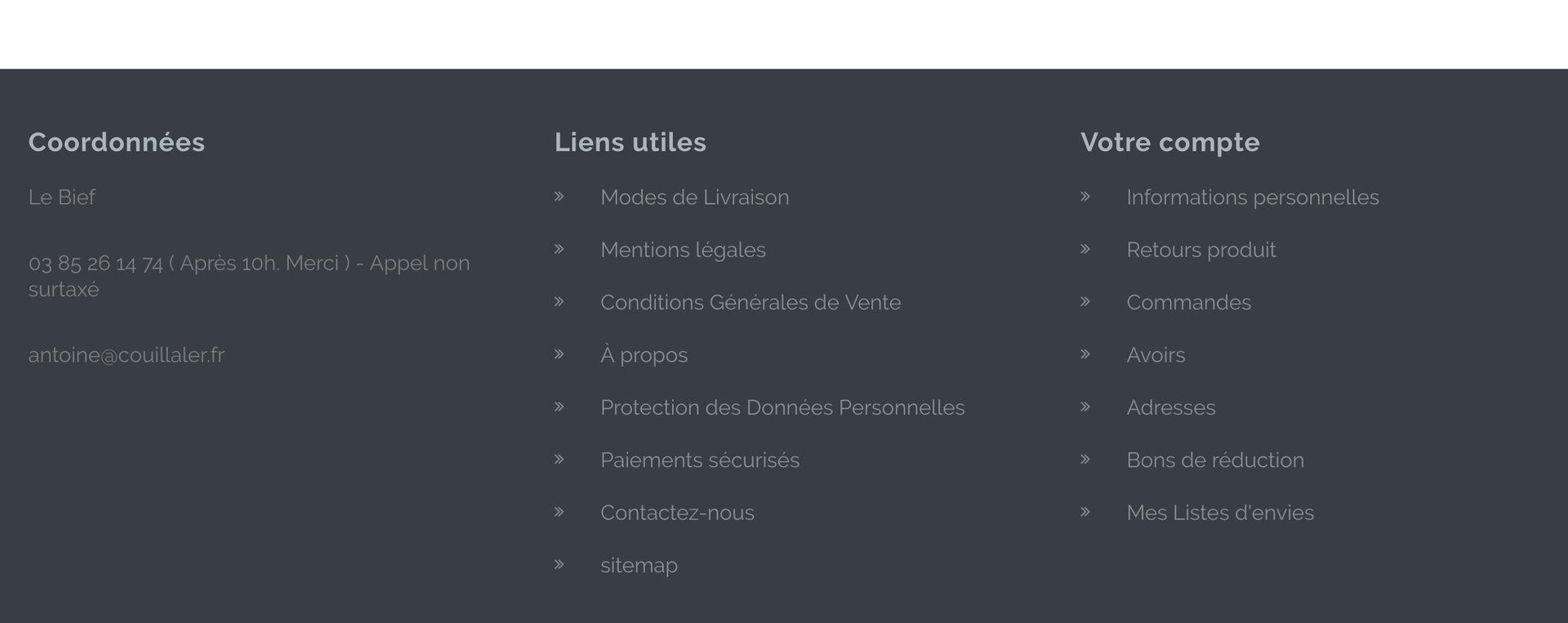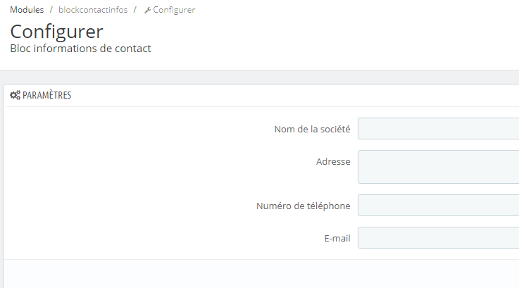 couillaler Posted June 11, 2019 Share Posted June 11, 2019 Version PS : 1.7.5.1 Hello, Je remonte un peu la question car j'en ai une qui s'en approche. J'aimerais que le bloc Informations (que j'ai renommé Coordonnées sur mon site) qui se situe sur la page d'accueil affiche mon adresse complète (nom entreprise - adresse rue - CP Ville - Pays), or il n'affiche que le nom de rue (qui correspond à "Adresse du magasin (ligne 1)" dans la rubrique Coordonnées de Contact / Magasin Quand je clique sur le bouton Contactez-nous de ce même bas de page, il affiche la page correspondante et là, le bloc est complet. Comment faire pour que ce bloc Informations (Coordonnées) affiche les mêmes renseignements que sur la page Contactez-nous ? Merci pour le coup de main, je ne trouve rien de particulier nulle part... Antoine Link to comment Share on other sites More sharing options...