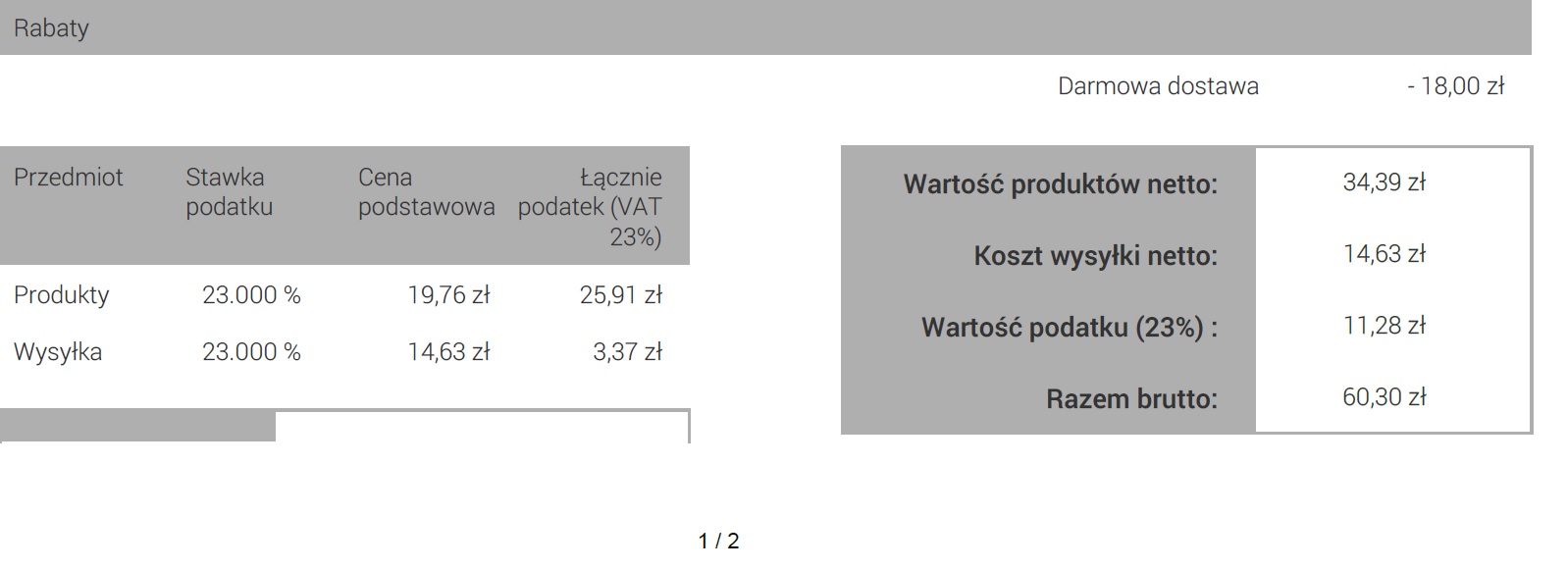 Mam problem z fakturą za zamówienie z rabatem darmowej dostawy, a mianowicie źle liczy łączny Vat za produkty ( od kwoty netto produktów odejmuje sobie kwotę netto za darmową dostawę i łączny podatek vat za produkty wpisuje jakiś kosmos)