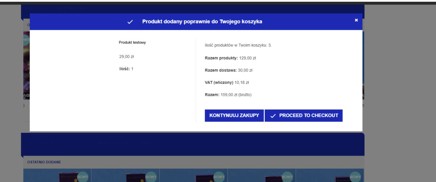 0 pawku80 Posted August 28, 2018 Author Share Posted August 28, 2018 To juz wina tego forum. Nie wiem jak to prosciej wystlumaczyc - chodzi o okienko które wyskakuje po kliknięciu na "dodaj do koszyka", wyskakuje okienko gdzie widać towar dodany do koszyka i zapytanie czy do zakupów czy przejść do koszyka Link to comment Share on other sites More sharing options...