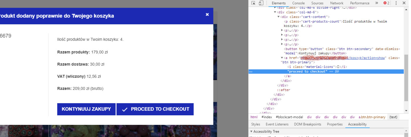 0 pawku80 Posted August 28, 2018 Author Share Posted August 28, 2018 Sklep jest na chwile obecna na serwerze lokalnym. Powyższy screen jest z okienka które pojawia się po dodaniu produktu do koszyka (po kliknięciu dodaj do koszyka) Link to comment Share on other sites More sharing options...