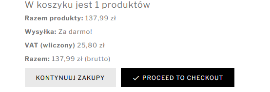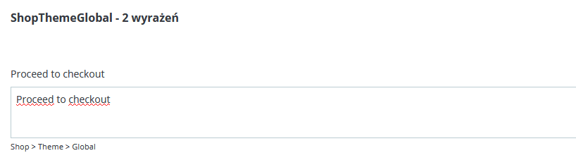 Mam problem ze znalezieniem gdzie to zmienić - ciągle pokazuje komunikat po angielsku (proceed to checkout)- w tłumaczeniu z panelu jest zmienione poprawnie ale wyswietla sie dalej tak samo , gdzie moge to na "sztywno zmienic" ? cache wyczyszczone