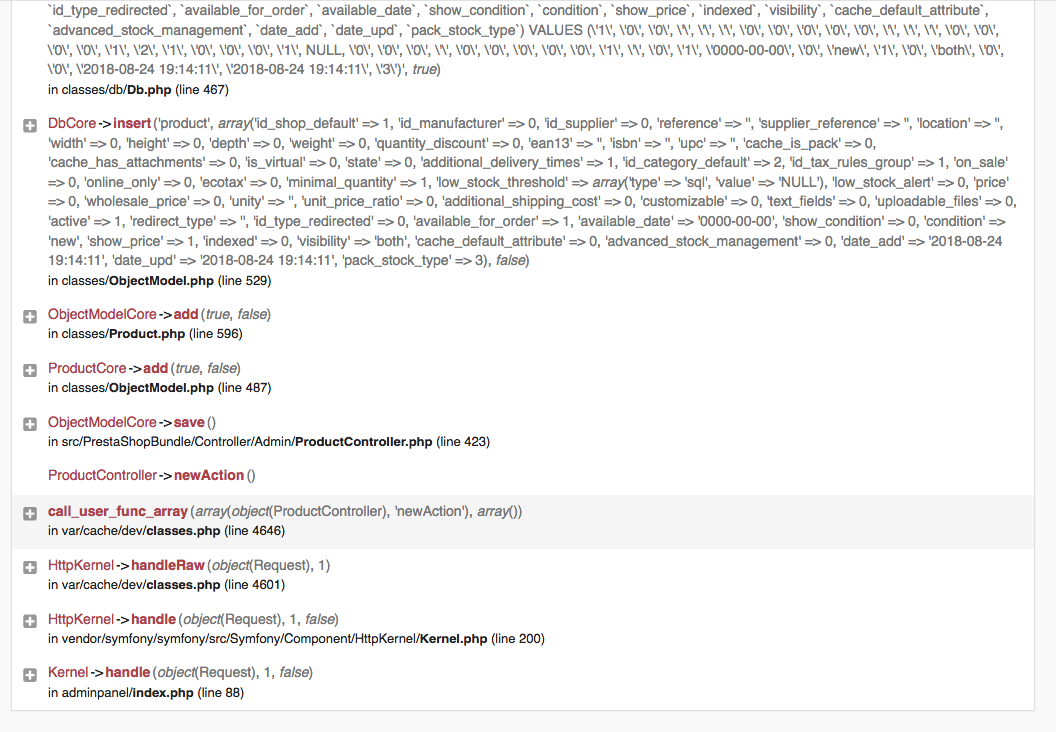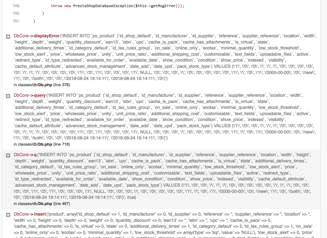 ifs Posted August 24, 2018 Author Share Posted August 24, 2018 Under debug mode I got these errors below but it is quite impossible for me to understand Symfony Exception SymfonyDocs SymfonySupport PrestaShopDatabaseException HTTP 500 Internal Server Error Unknown column 'additional_delivery_times' in 'field list'<br /><br /><pre>INSERT INTO `ps_product` (`id_shop_default`, `id_manufacturer`, `id_supplier`, `reference`, `supplier_reference`, `location`, `width`, `height`, `depth`, `weight`, `quantity_discount`, `ean13`, `isbn`, `upc`, `cache_is_pack`, `cache_has_attachments`, `is_virtual`, `state`, `additional_delivery_times`, `id_category_default`, `id_tax_rules_group`, `on_sale`, `online_only`, `ecotax`, `minimal_quantity`, `low_stock_threshold`, `low_stock_alert`, `price`, `wholesale_price`, `unity`, `unit_price_ratio`, `additional_shipping_cost`, `customizable`, `text_fields`, `uploadable_files`, `active`, `redirect_type`, `id_type_redirected`, `available_for_order`, `available_date`, `show_condition`, `condition`, `show_price`, `indexed`, `visibility`, `cache_default_attribute`, `advanced_stock_management`, `date_add`, `date_upd`, `pack_stock_type`) VALUES ('1', '0', '0', '', '', '', '0', '0', '0', '0', '0', '', '', '', '0', '0', '0', '0', '1', '2', '1', '0', '0', '0', '1', NULL, '0', '0', '0', '', '0', '0', '0', '0', '0', '1', '', '0', '1', '0000-00-00', '0', 'new', '1', '0', 'both', '0', '0', '2018-08-24 19:14:11', '2018-08-24 19:14:11', '3')</pre> Exception Logs2 Stack Trace PrestaShopDatabaseException inclasses/db/Db.php(line 746) if ($webservice_call && $errno) { $dbg = debug_backtrace(); WebserviceRequest::getInstance()->setError(500, '[SQL Error] '.$this->getMsgError().'. From '.(isset($dbg[3]['class']) ? $dbg[3]['class'] : '').'->'.$dbg[3]['function'].'() Query was : '.$sql, 97); } elseif (_PS_DEBUG_SQL_ && $errno && !defined('PS_INSTALLATION_IN_PROGRESS')) { if ($sql) { throw new PrestaShopDatabaseException($this->getMsgError().'<br /><br /><pre>'.$sql.'</pre>'); } throw new PrestaShopDatabaseException($this->getMsgError()); } } DbCore->displayError('INSERT INTO `ps_product` (`id_shop_default`, `id_manufacturer`, `id_supplier`, `reference`, `supplier_reference`, `location`, `width`, `height`, `depth`, `weight`, `quantity_discount`, `ean13`, `isbn`, `upc`, `cache_is_pack`, `cache_has_attachments`, `is_virtual`, `state`, `additional_delivery_times`, `id_category_default`, `id_tax_rules_group`, `on_sale`, `online_only`, `ecotax`, `minimal_quantity`, `low_stock_threshold`, `low_stock_alert`, `price`, `wholesale_price`, `unity`, `unit_price_ratio`, `additional_shipping_cost`, `customizable`, `text_fields`, `uploadable_files`, `active`, `redirect_type`, `id_type_redirected`, `available_for_order`, `available_date`, `show_condition`, `condition`, `show_price`, `indexed`, `visibility`, `cache_default_attribute`, `advanced_stock_management`, `date_add`, `date_upd`, `pack_stock_type`) VALUES (\'1\', \'0\', \'0\', \'\', \'\', \'\', \'0\', \'0\', \'0\', \'0\', \'0\', \'\', \'\', \'\', \'0\', \'0\', \'0\', \'0\', \'1\', \'2\', \'1\', \'0\', \'0\', \'0\', \'1\', NULL, \'0\', \'0\', \'0\', \'\', \'0\', \'0\', \'0\', \'0\', \'0\', \'1\', \'\', \'0\', \'1\', \'0000-00-00\', \'0\', \'new\', \'1\', \'0\', \'both\', \'0\', \'0\', \'2018-08-24 19:14:11\', \'2018-08-24 19:14:11\', \'3\')')inclasses/db/Db.php(line 378) DbCore->query('INSERT INTO `ps_product` (`id_shop_default`, `id_manufacturer`, `id_supplier`, `reference`, `supplier_reference`, `location`, `width`, `height`, `depth`, `weight`, `quantity_discount`, `ean13`, `isbn`, `upc`, `cache_is_pack`, `cache_has_attachments`, `is_virtual`, `state`, `additional_delivery_times`, `id_category_default`, `id_tax_rules_group`, `on_sale`, `online_only`, `ecotax`, `minimal_quantity`, `low_stock_threshold`, `low_stock_alert`, `price`, `wholesale_price`, `unity`, `unit_price_ratio`, `additional_shipping_cost`, `customizable`, `text_fields`, `uploadable_files`, `active`, `redirect_type`, `id_type_redirected`, `available_for_order`, `available_date`, `show_condition`, `condition`, `show_price`, `indexed`, `visibility`, `cache_default_attribute`, `advanced_stock_management`, `date_add`, `date_upd`, `pack_stock_type`) VALUES (\'1\', \'0\', \'0\', \'\', \'\', \'\', \'0\', \'0\', \'0\', \'0\', \'0\', \'\', \'\', \'\', \'0\', \'0\', \'0\', \'0\', \'1\', \'2\', \'1\', \'0\', \'0\', \'0\', \'1\', NULL, \'0\', \'0\', \'0\', \'\', \'0\', \'0\', \'0\', \'0\', \'0\', \'1\', \'\', \'0\', \'1\', \'0000-00-00\', \'0\', \'new\', \'1\', \'0\', \'both\', \'0\', \'0\', \'2018-08-24 19:14:11\', \'2018-08-24 19:14:11\', \'3\')')inclasses/db/Db.php(line 718) DbCore->q('INSERT INTO `ps_product` (`id_shop_default`, `id_manufacturer`, `id_supplier`, `reference`, `supplier_reference`, `location`, `width`, `height`, `depth`, `weight`, `quantity_discount`, `ean13`, `isbn`, `upc`, `cache_is_pack`, `cache_has_attachments`, `is_virtual`, `state`, `additional_delivery_times`, `id_category_default`, `id_tax_rules_group`, `on_sale`, `online_only`, `ecotax`, `minimal_quantity`, `low_stock_threshold`, `low_stock_alert`, `price`, `wholesale_price`, `unity`, `unit_price_ratio`, `additional_shipping_cost`, `customizable`, `text_fields`, `uploadable_files`, `active`, `redirect_type`, `id_type_redirected`, `available_for_order`, `available_date`, `show_condition`, `condition`, `show_price`, `indexed`, `visibility`, `cache_default_attribute`, `advanced_stock_management`, `date_add`, `date_upd`, `pack_stock_type`) VALUES (\'1\', \'0\', \'0\', \'\', \'\', \'\', \'0\', \'0\', \'0\', \'0\', \'0\', \'\', \'\', \'\', \'0\', \'0\', \'0\', \'0\', \'1\', \'2\', \'1\', \'0\', \'0\', \'0\', \'1\', NULL, \'0\', \'0\', \'0\', \'\', \'0\', \'0\', \'0\', \'0\', \'0\', \'1\', \'\', \'0\', \'1\', \'0000-00-00\', \'0\', \'new\', \'1\', \'0\', \'both\', \'0\', \'0\', \'2018-08-24 19:14:11\', \'2018-08-24 19:14:11\', \'3\')', true)inclasses/db/Db.php(line 467) DbCore->insert('product', array('id_shop_default' => 1