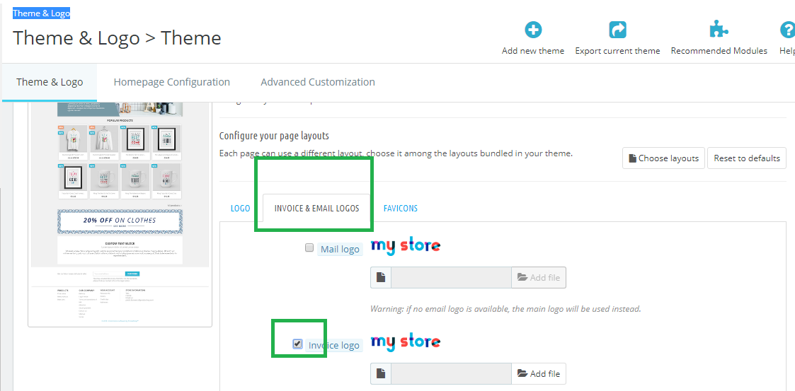 kishan soni Posted March 12, 2019 Share Posted March 12, 2019 On 9/4/2018 at 2:46 PM, Knowband Plugins said: Hi, To change the logo for Invoice only, Go to Design -> Theme & Logo & then click on the Invoice & Email logo (As mentioned in the screenshot) & upload the logo for invoice. I hope it will help. I have done this way and have changed all this logo also, But when a customer receives an invoice, it shows the default logo within the invoice though all logo has been changed on the above page, Looking forward for a solution for this. Link to comment Share on other sites More sharing options...