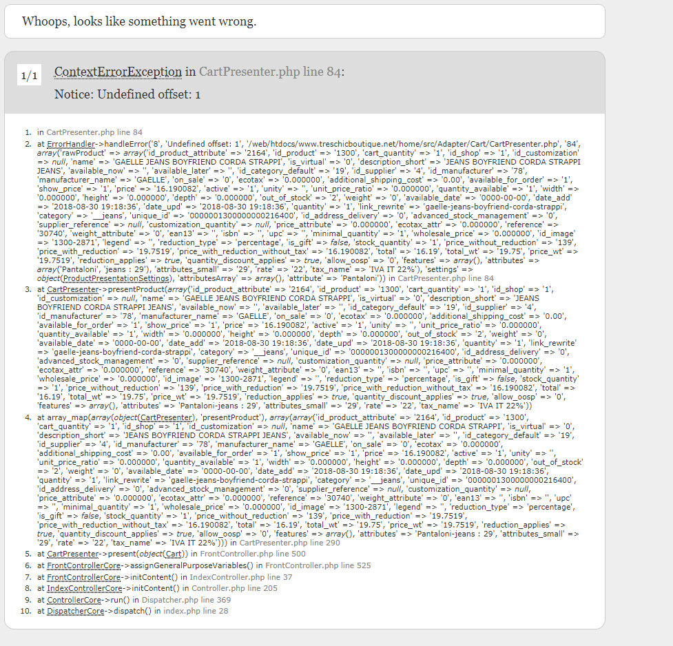 infoapp2u Posted September 3, 2018 Share Posted September 3, 2018 Salve a tutti, ho un problema con il carrello su un prodotto in particolare. In pratica inserendo nel carrello tale prodotto, il sistema e quindi il sito si blocca fornen do il seguente errore come da immagine: Non ho capito se il prodotto ha di suo qualche anomalia o altro. Avete qualche idea in merito su come posso sbloccare la questione ? Link to comment Share on other sites More sharing options...