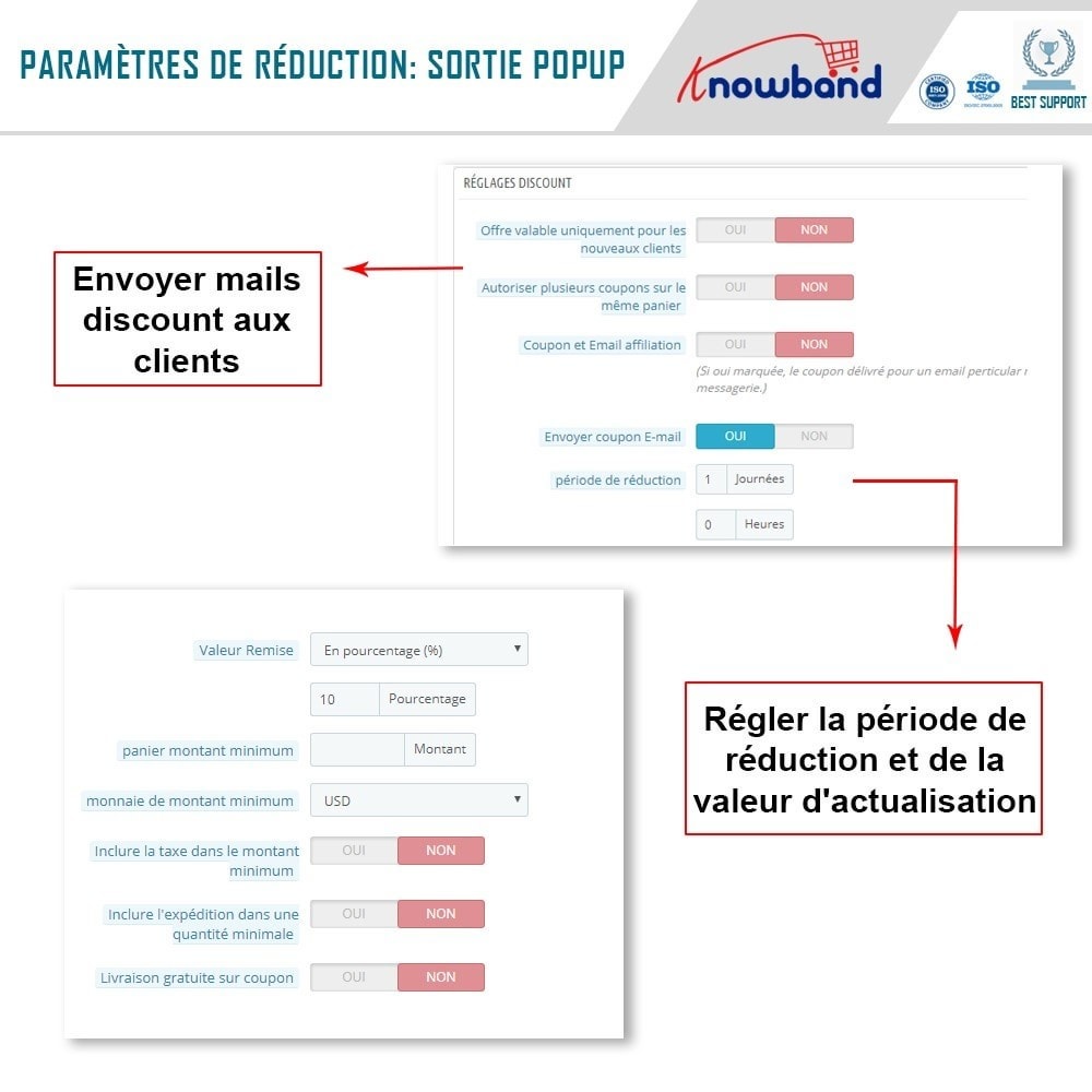 Knowband Plugins Posted September 4, 2018 Share Posted September 4, 2018 Pop-Up de Fermeture Le Popup de sortie fonctionne sur la technologie d'intention de sortie. Dès que le client essaie de quitter votre magasin, la technologie d'intention de sortie affiche une fenêtre contextuelle interactive à l'intention du client qui offre une réduction alléchante. La technologie d'intention de sortie suit l'action du survol de la souris par les visiteurs et affiche les fenêtres contextuelles qui aident l'administrateur du magasin à réduire les paniers abandonnés. En utilisant le module Popup Exit, l'administrateur du magasin peut également augmenter la liste des abonnés au courrier électronique. Le module Exit Popp est le meilleur outil pour la stratégie marketing. Le module Exit Popup est disponible pour la version Prestashop 1.5.x.x à 1.7.x.x. Plus d'infos et achat ici: Pop-Up de Fermeture Démo Back Office Démo Boutique Principales caractéristiques du module Pop-Up de Fermeture: 1) Affiche les popups avec des remises basées sur le comportement du visiteur du site. 2) Recueille les identifiants de messagerie du client pouvant être synchronisés avec la liste MailChimp existante. 3) L'administrateur peut facilement personnaliser l'apparence du menu contextuel de sortie. 4) L'administrateur peut facilement personnaliser le texte affiché sur le menu contextuel de sortie. 5) L'administrateur peut afficher le coupon uniquement sur le magasin ou sélectionner l'option pour envoyer le code de coupon par courrier électronique. 6) L'administrateur peut ajouter le logo de la société / marque pour la promotion dans la fenêtre contextuelle de l'abonnement par courrier électronique. 7) Admin peut facilement suivre les statistiques des coupons générés et des coupons utilisés. 8) Le module Exit Popup est compatible avec GDPR. L'administrateur peut facilement ajouter les cases à cocher pour l'autorisation du client. 9) L'onglet des paramètres de remise du module Quitter permet à l'administrateur du magasin de définir la valeur de la remise en pourcentage ou en montant fixe. 10) L'administrateur peut facilement synchroniser les identifiants de messagerie capturés avec la liste d'abonnés MailChimp. L'onglet Paramètres MailChimp du module Quitter permet à l'administrateur du magasin d'intégrer le compte MailChimp à la fenêtre contextuelle de sortie. Avantages: 1) Le Popup Exit permet de réduire l’abandon du chariot. 2) La remise spéciale offerte par Exit Popup encourage le client à finaliser son achat. 3) L'administrateur du magasin peut facilement augmenter la liste de diffusion afin de pouvoir recibler les clients par email marketing. 4) Le module Quitter Popup permet à l'administrateur du magasin de recibler les clients et d'augmenter les revenus. Module link: https://addons.prestashop.com/fr/remarketing-paniers-abandonnes/22110-knowband-pop-up-de-fermeture.html Link to comment Share on other sites More sharing options...