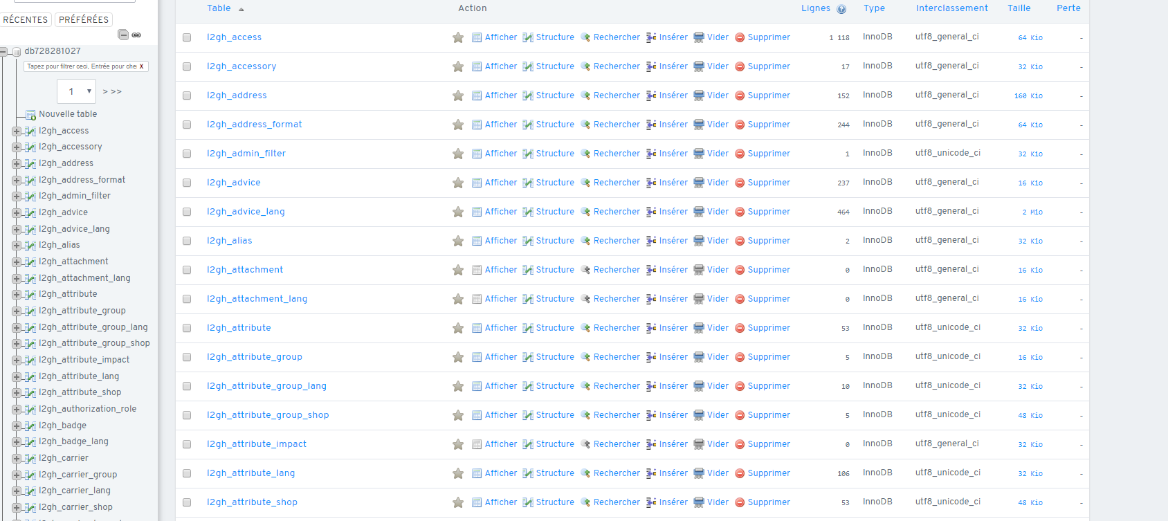 jordy971 Posted November 20, 2018 Share Posted November 20, 2018 I don't have "ps_" Look what is in my database phpMyAdmin Thank you for you're help Link to comment Share on other sites More sharing options...
