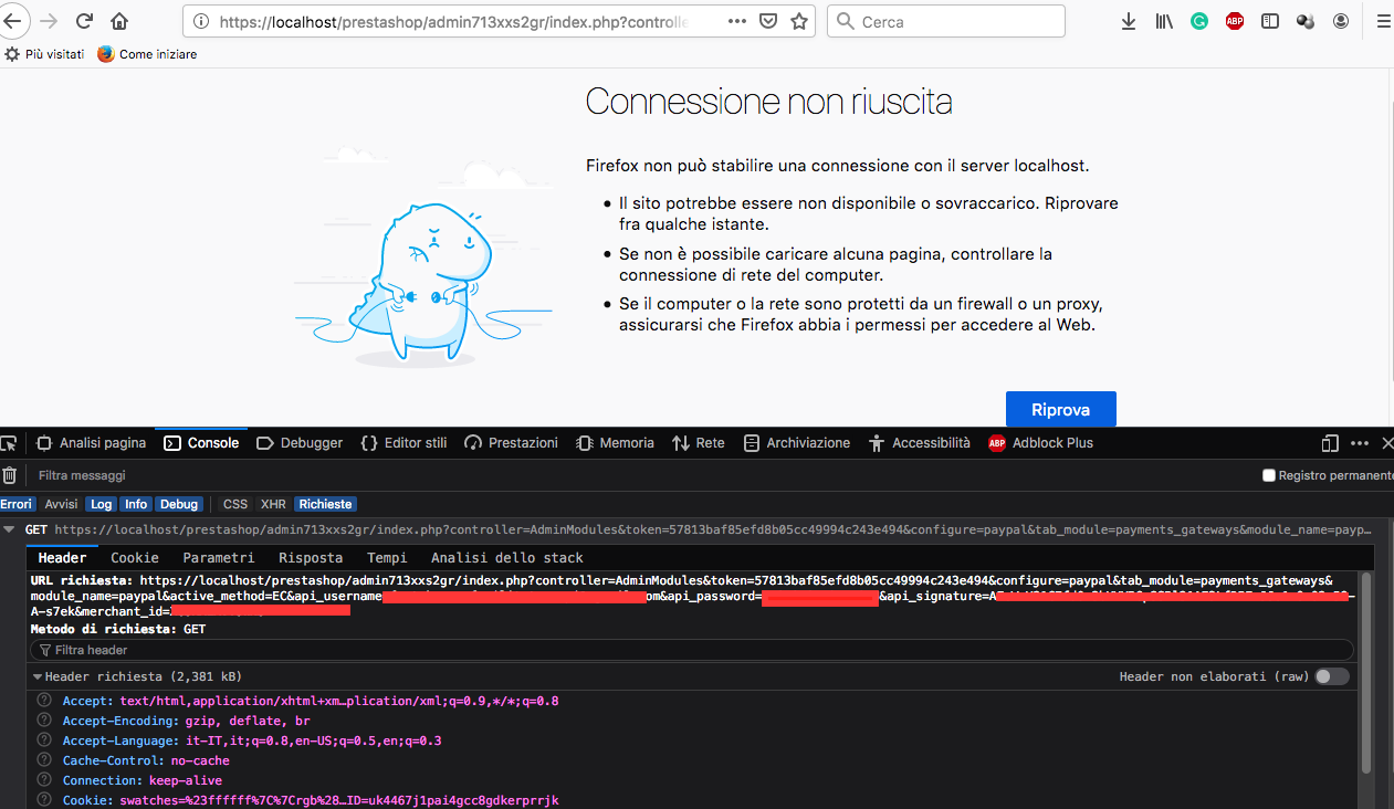 carminoplata Posted June 20, 2019 Share Posted June 20, 2019 Hello everybody, I am dealing with similar problems on Paypal module. Practically, the first time, I tried to activate Paypal service (no Braintree) without the flag for sandbox but I didn't want to complete it. So I found a manual as a user guide for the configuration of the module, and I tried to follow it. I activated the Sandbox flag and then I tried to login and associate my sandbox account with the Business profile. When I click on Authorize button to provide information for Paypal API and I come back to Prestashop, I get a 500 Internal Server Error but the data in the request are correct. Could it be due to the use of localhost and not a production server (hosting for example)? there is a screenshot of the results of the request at Paypal in attachment. I tried also to update manually the fields into DB but it hasn't solved my problem yet. Thanks a lot for your reply and support Link to comment Share on other sites More sharing options...
