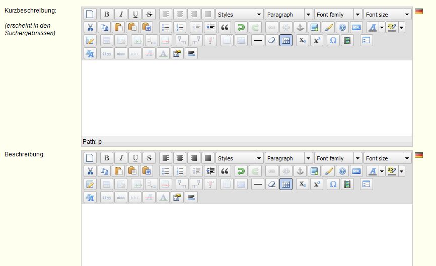 Damit du für die Kurzbeschreibung im BO -> Artikel -> Editor Kurzbeschreibung