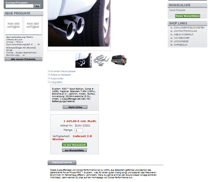 "Es gibt auch eine Kurzbeschreibung im Artikel selbst, also in einem extra Container rechts neben dem Produktbild."