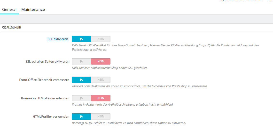 Ich versuche meinen Shop auf https:// umzustellen. Ich habe das SSL Zertifikat meines Hosting Providers aktiviert und im PrestaShop System SSL aktiviert. Allerdings kann ich danach nicht mehr auf die Seite zugreifen, sie wird nicht mehr angezeigt. Gibt es noch etwas anderes, dass man umstellen muss, dass man auf den Shop unter https:// zugreifen kann?