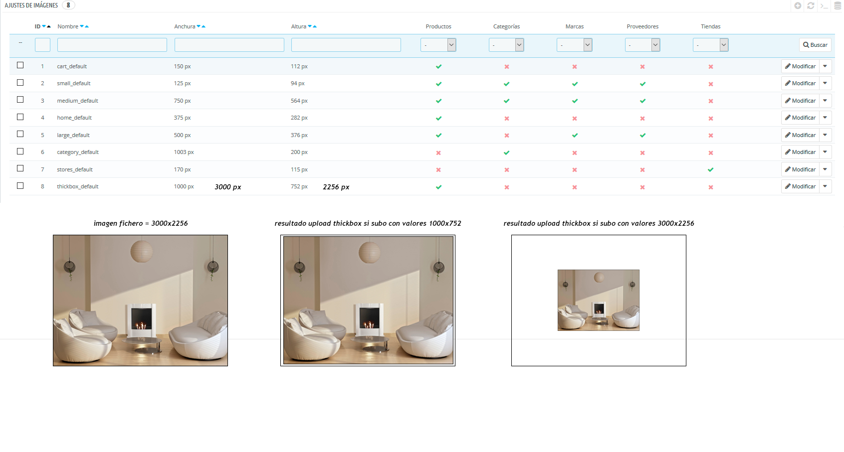 4.  Un fallo complejo: thickbox, la más grande es como si se generara a partir de home_default en vez de a la inversa, y lo que hace es completar en blanco todo el sobrante. El resto de thumbails perfectos, sin un pixel en blanco, pero la inicial nada,