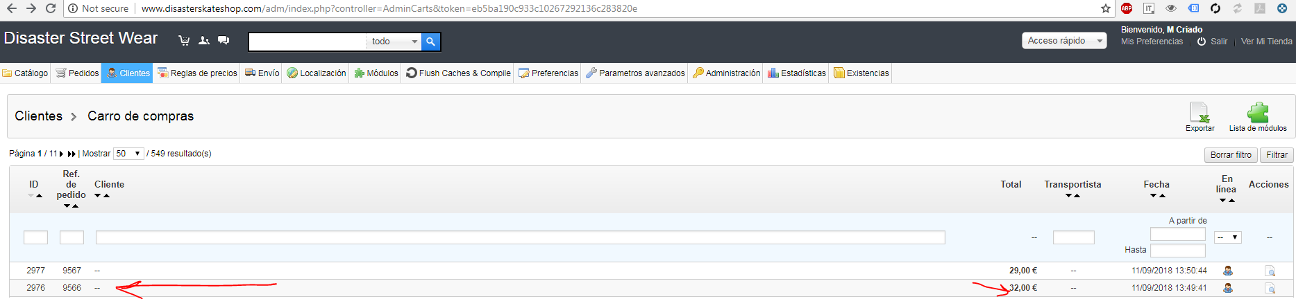 infinityl Posted September 11, 2018 Share Posted September 11, 2018 Su Carrito está Vacio en prestashop 1.5.4.1 funcionando de hace años. Tengo un prestashop funcionando desde hace varios años y hace un tiempo empezó a dar problemas con los carritos (se quedaba la pantalla en blanco de vez en cuando), ahora ya no se queda en blanco pero vacia los carritos. Cuando se añade algo al carrito se ve que se ha añadido un producto, si se intentan añadir más sólo pone la marca de 1. Y al darle a confirmar o ver carrito lleva al paso 1 del checkout con un mensaje de "su carrito está vacio". Si me voy al area de admin en los carritos abandonados no me deja "hacer un pedido con ese carrtio", porque me salen como que los carritos tienen pedidos asignados pero con numero de pedidos antiguos. Lo normal sería que se quedará abandonado con opcion a crear un pedido con ese carrito sin finalizar, pero el sistema los finaliza. Mando imagenes de todo. He intentado casi todo lo que he podido encontrar en el foro. Lo más raro es que de 200 veces 1 funciona.... Alguna idea? Mil gracias por anticipado! Link to comment Share on other sites More sharing options...