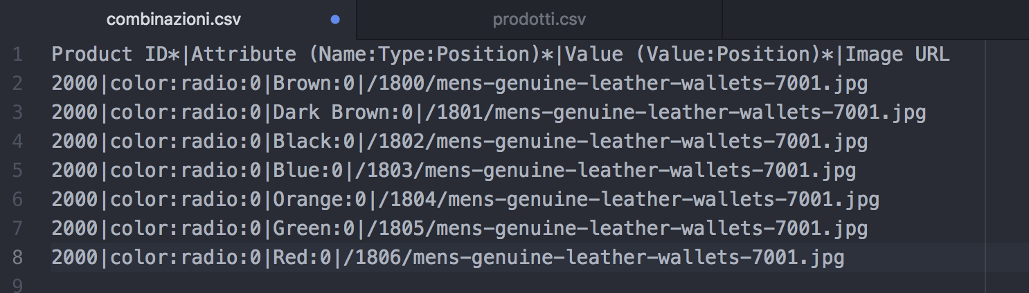 I'm importing products and combinations via csv files in that way: