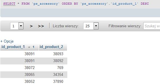 mudol Posted September 25, 2018 Author Share Posted September 25, 2018 (edited) Dzięki za wiele odpowiedzi Włączyłem debuga, w adminie i na karcie produktu pojawił się błąd: " [PrestaShopDatabaseException] Column 'id_product_2' in on clause is ambiguous " w classes/Product.php w miejscach gdzie wystąpiła ta kolumna dodałem przedrostek tabeli ps._accessory.`id_product_2`. O ile w adminie naprawiło to błąd (można już zapisywać akcesoria oraz wyświetlają się pełne nazwy produktów) o tyle na karcie produktu po prostu już błąd się nie wyświetla, ale nadal nie pojawiają się akcesoria. Ciekawe skąd wogóle taki błąd na czystym sklepie? Ktoś coś? edit: ok sprawa rozwiązana, ten błąd naprawił wiele, a dodanie ilości do produktów z akcesorii rozwiązało problem całkowicie:) Edited September 25, 2018 by mudol solved (see edit history) Link to comment Share on other sites More sharing options...