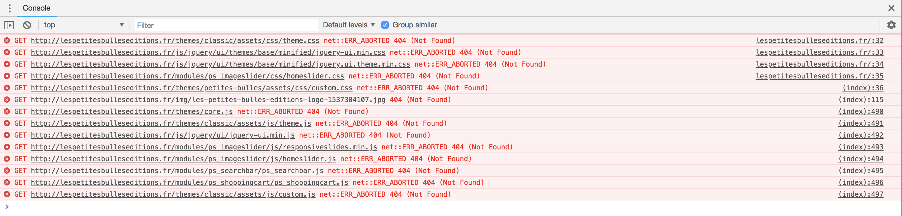 Petite bulle Posted September 22, 2018 Author Share Posted September 22, 2018 Bonjour, J'essaie d'avancer : j'ai créé un répertoire "boutique" que j'ai mis dans le répertoire "www". J'ai importé ma data base du local vers l'hébergeur. J'ai d'abord modifié les liens de ps_shop_url Mais comme ça ne fonctionnait pas, j'ai changé dans la database toutes les occurrences de localhost en / Mais j'ai encore plein plein d'erreurs : Quelqu'un aurait des pistes ? Je sèche un peu... Merci !! Link to comment Share on other sites More sharing options...