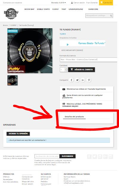 ramsaybeats Posted September 27, 2018 Share Posted September 27, 2018 Buenas a todos! Soy muy nuevo en Prestashop, por eso supongo que mi pregunta para ustedes sera la mas ridícula del mundo hehe... Me gustaría saber donde puedo editar o modificar la vista donde sale el producto, mas detalladamente lo que necesito es quitar un modulo o no se lo que sera. Adjunto una imagen donde señalo que es lo que quiero quitar exactamente, ya que en mi tipo de tienda no lo voy a necesitar para nada y solo me quita espacio de visualización. Muchas gracias y espero sus respuestas, un placer contar con vuestra ayuda. Link to comment Share on other sites More sharing options...