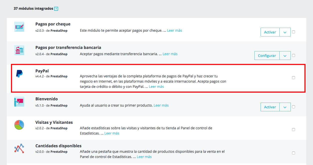 Marvin Primera Posted September 27, 2018 Share Posted September 27, 2018 Hola, buenas tardes... He actualizado prestashop a la versión 1.7.4.2 y he descargado desde el addons el modulo de PayPal 4.4.2, he hecho la instalación del módulo y al buscarlo en la lista de módulos este aparece, pero sin el botón para configurar, (adjunto pantalla) ¿Que podría estar pasando? Muchas gracias Link to comment Share on other sites More sharing options...