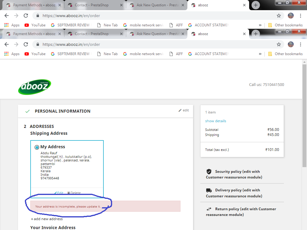 Abdu Rauf Posted October 8, 2018 Share Posted October 8, 2018 This is my ecommerce site created by using prestashop software. one of my friend told me that when he is trying to type the address it says the address is incomplete. so i tried it with my account. it also seems like that. i had marked the problem in the above pic. please check that and reply me how to solve it Link to comment Share on other sites More sharing options...