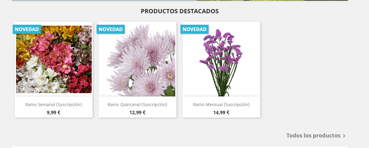 JavierMedina Posted October 15, 2018 Share Posted October 15, 2018 Muy buenas! He instalado Prestashop 1.7.4.2 y necesitaría usar sólo 3 productos que sean de suscripción. No he encontrado ninguna plantilla específica para este tipo de webs. ¿Conocéis alguna? No obstante, me gustaría saber cómo podría modificar el tamaño de las fotos de productos que aparecen en la portada de la web para que en lugar de 4, se muestren únicamente 3. Adjunto foto. Gracias, un saludo. Link to comment Share on other sites More sharing options...