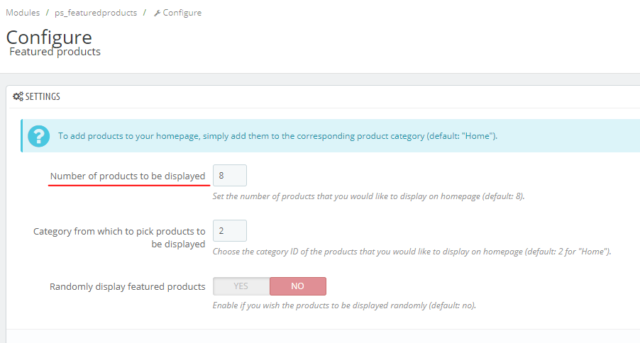 JavierMedina Posted October 16, 2018 Author Share Posted October 16, 2018 37 minutes ago, Rolige said: Hola: Hay varias posibilidades: Algunos temas ya tiene su propio módulo de destacados. En ese caso tendrías que modificar directamente el límite máximo en el módulo, ya sea a través de alguna opción que este te ofrezca o directamente en el código. Algunos temas tienen módulos de configuración que permiten configurar cuantos elementos se van a mostrar visualmente en los listados de productos del FrontOffice. Por último, puedes modificar tú mismo los estilos CSS del tema para que muestre solamente 3 productos. Aquí nada más ten en cuenta que si tienes que cambiar el tamaño de las imágenes deberías revisar las opciones del menú Imágenes en el BackOffice y tener cuidado de no modificar un tipo de imagen que luego se utilice en otro lugar de la tienda y desajuste los tamaños. Saludos Muchas gracias por responder. Se trata de la plantilla predeterminada "Classic". He probado cambiar el tamaño de las imágenes en Diseño -> Ajustes de Imagen -> home_default de 250 a 350, pero ocurre lo siguiente: Link to comment Share on other sites More sharing options...