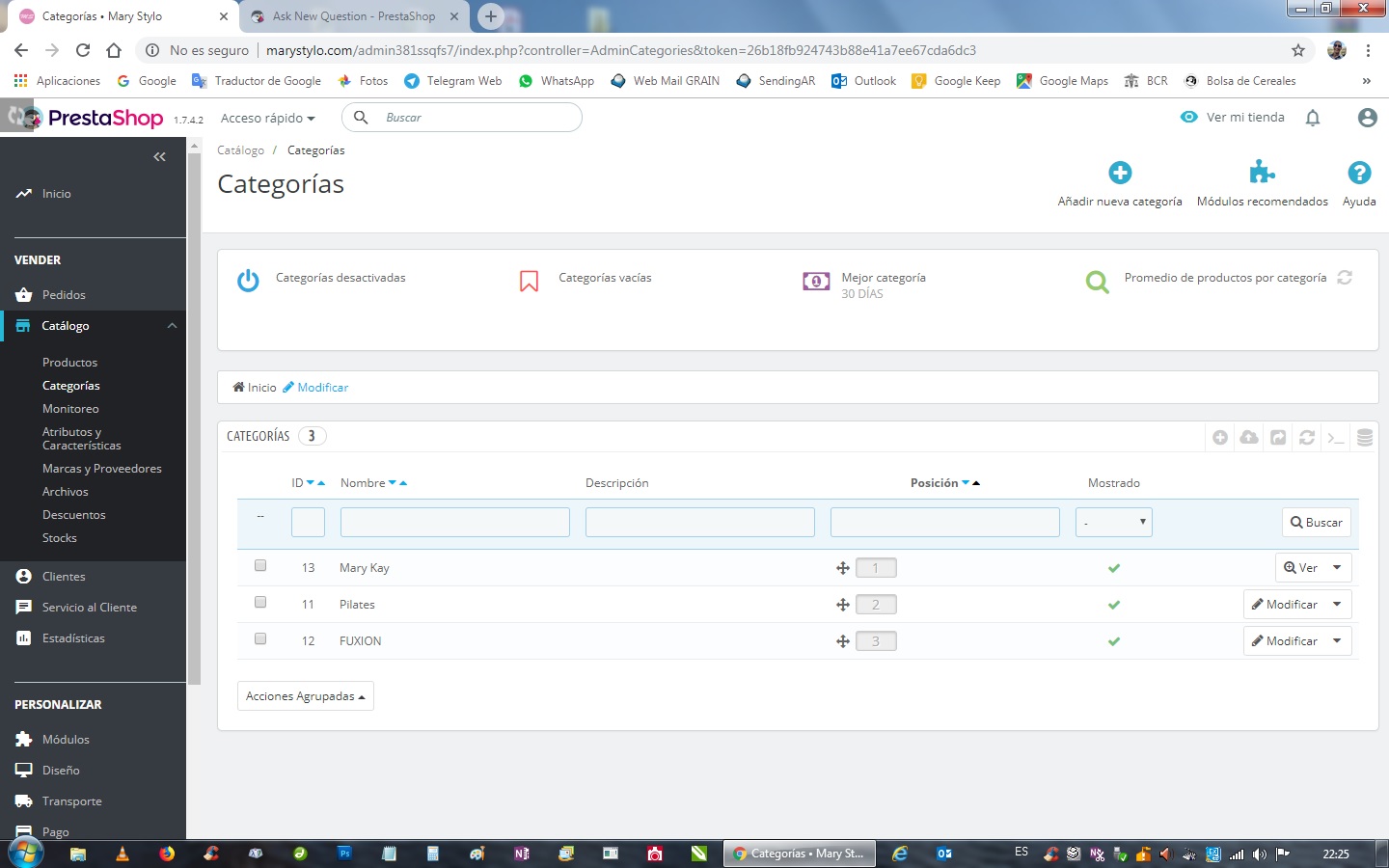 nadie Posted October 21, 2018 Share Posted October 21, 2018 hace 7 horas, juan_niveyro dijo: He credo categorias nuevas pero no me aparecen en el menu principal de la pagina Dices que no te aparecen las categorías nuevas en el "Menú horizontal" ¿Pero has ido a la configuración del módulo (en módulos => módulos) correspondiente al menú horizontal (https://victor-rodenas.com/2017/04/11/menu-horizontal-de-prestashop-1-7/) y has añadido las categorías que quieres que se muestren en el mismo? PD: Te lo digo, porque adjuntas dos capturas, una de la creación de categorías, y otra de la página principal de la tienda, pero ninguna de la configuración del menú horizontal. Si tienes el menú instalado y no aparece, reinicialo, y si sigue sin aparecer prueba borrar la caché en la pestaña parametros avanzados => rendimiento => botón borrar caché Saludos, Link to comment Share on other sites More sharing options...