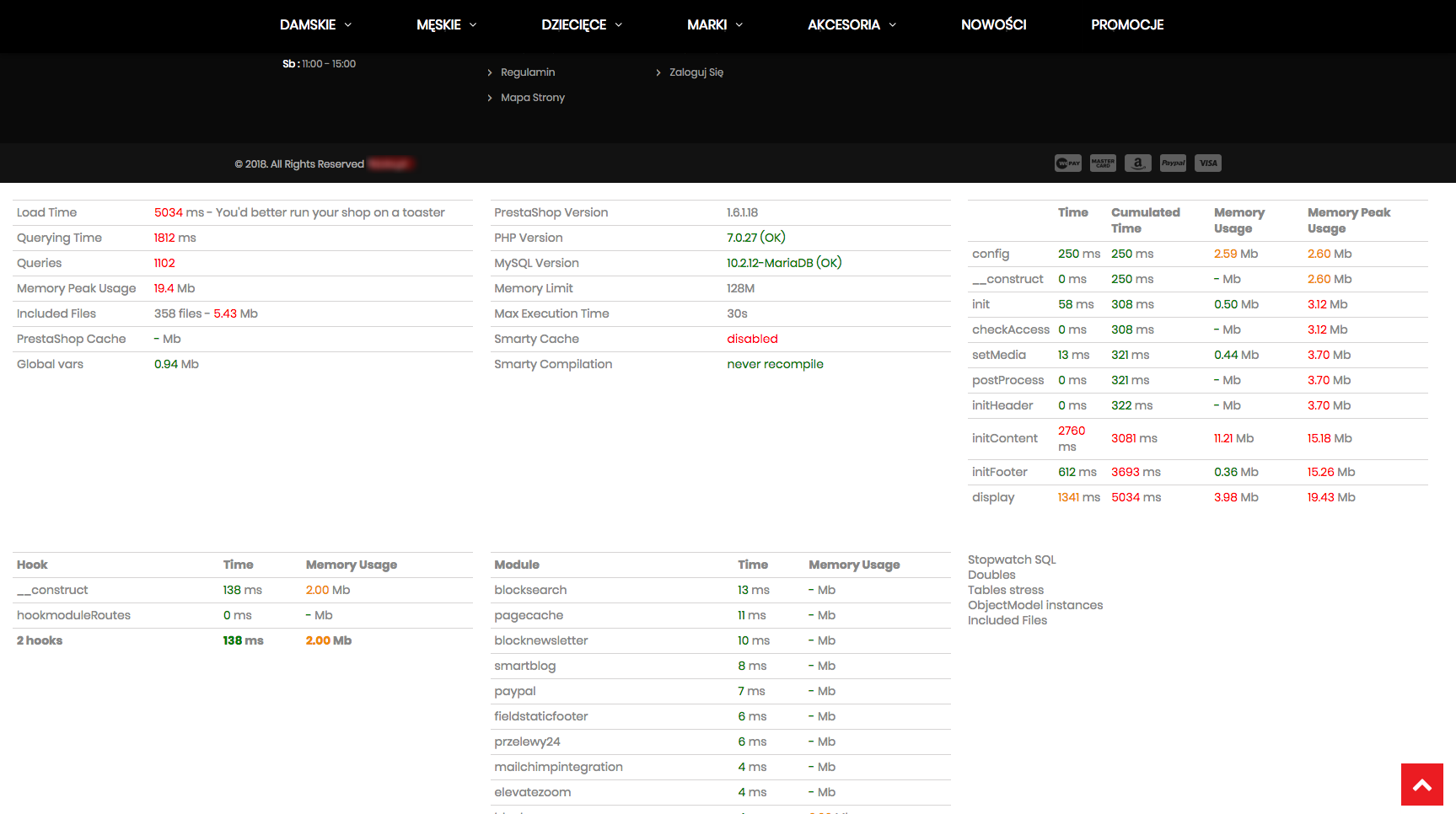 benzior Posted October 22, 2018 Share Posted October 22, 2018 Witam wszystkich. Mam problem z bardzo wolnym wczytywaniem się sklepu postawionego na Prestashop 1.6.1.7 Link do sklepu: http://winotokaj.pl Sytuacja ma miejsce już od dłuższego czasu jednak zdarzają się kilkudniowe epizody, że wszystko działa poprawnie. Co ciekawe, zaplecze (panel admina) ładuje się całkiem przyzoicie. Sklep postawiony jest na hostingu Hekko. Moglibyście mi doradzić co może być nie tak i od czego zacząć naprawę? Link to comment Share on other sites More sharing options...