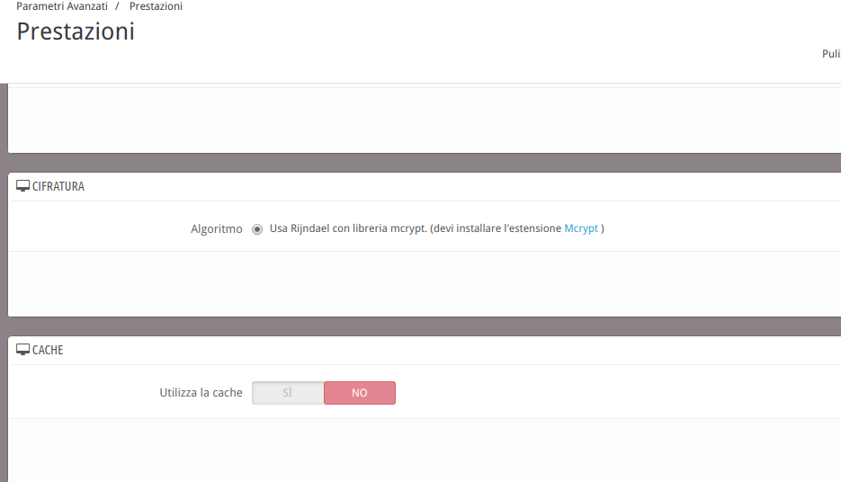 mikirimiki Posted October 23, 2018 Share Posted October 23, 2018 (edited) Buongiorno a tutti, nel mio BO è scomparsa la scelta tra due tipi di cifratura. Rimane soltanto la possibilità di utilizzare Rijndeal. Nell'allegato si può vedere chiaramente l'unica possibilità rimasta in PARAMETRI AVANZATI > PRESTAZIONI. Si tratta di una scelta di Prestashop? Potete verificiare nel vostro BO se è lo stesso? Grazie Edited October 23, 2018 by mikirimiki (see edit history) Link to comment Share on other sites More sharing options...