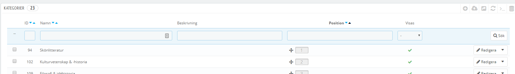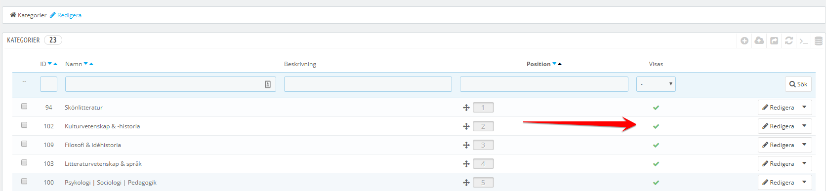 I have also put the parent category "Kategorier" in the main top menu, but that isn't showing any subcategories either.