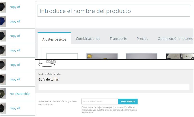 Brian Jokabet Posted October 30, 2018 Share Posted October 30, 2018 Buenas, un saludo! Tras estar traduciendo algunas palabras del modulo PayPal para que aparecieran en el carrito en español, después de terminar con esto, fui a la pagina Gorras CDMX y me encontré con la sorpresa de que los nombres de todos los productos se habían modificado y borrado, sin aparecer las imágenes de los mismos. También en las paginas como Guía de tallas se les elimino su contenido. Alguien que me asesore de como restaurar el contenido. Por favor! Gracias. Link to comment Share on other sites More sharing options...