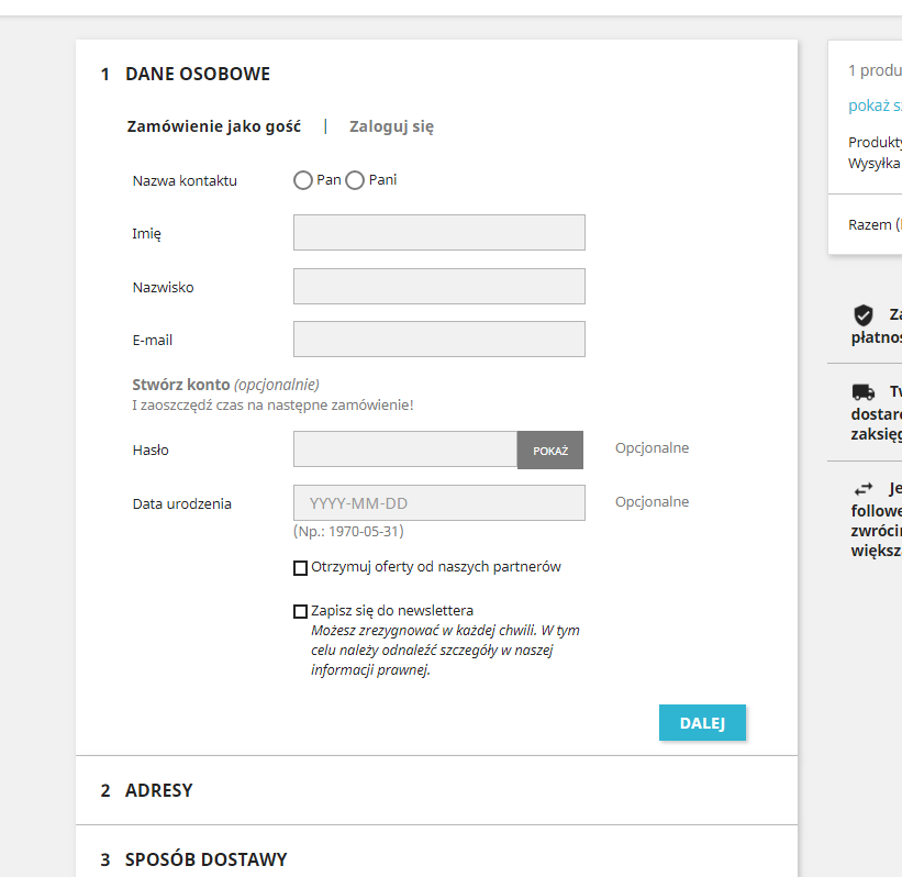 Jak dodać wymaganą informację w polu formularza zamówienia?