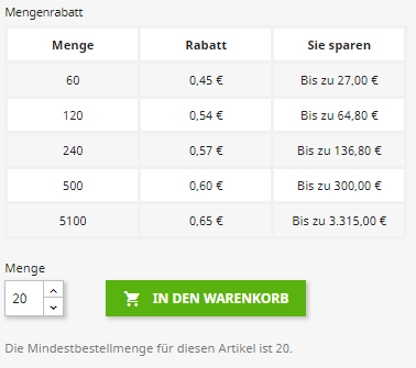 Jetzt habe ich viele Produkte die einen Staffelpreis haben (eigentlich fast alle :D). Aber statt auf der Produktseite, der Staffelpreis Angezeigt wird, steht da "Rabatt" und "sie Sparen". Ich möchte aber Staffelpreis statt Mengenrabatt.
