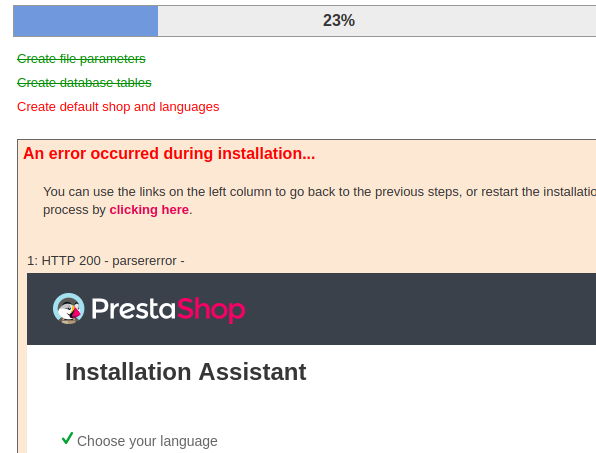 Samos Posted November 12, 2018 Share Posted November 12, 2018 Bonjour a tous ! Voila j'ai décidé de passer a Ubuntu 18.04. J'essaye d'installer prestashop 1.7 cependant je rencontre des problèmes lors de l'installation... J'ai réussi a installer LAMP (enfin je pense vu que j'arrive sur la page d'installation) . Mais a la dernière étape, prestashop plante... Je vous met une image pour que vous puissiez m'aider. Merci beaucoup pour vos futures réponses. Sam L'erreur : 1: HTTP 200 - parsererror - Link to comment Share on other sites More sharing options...