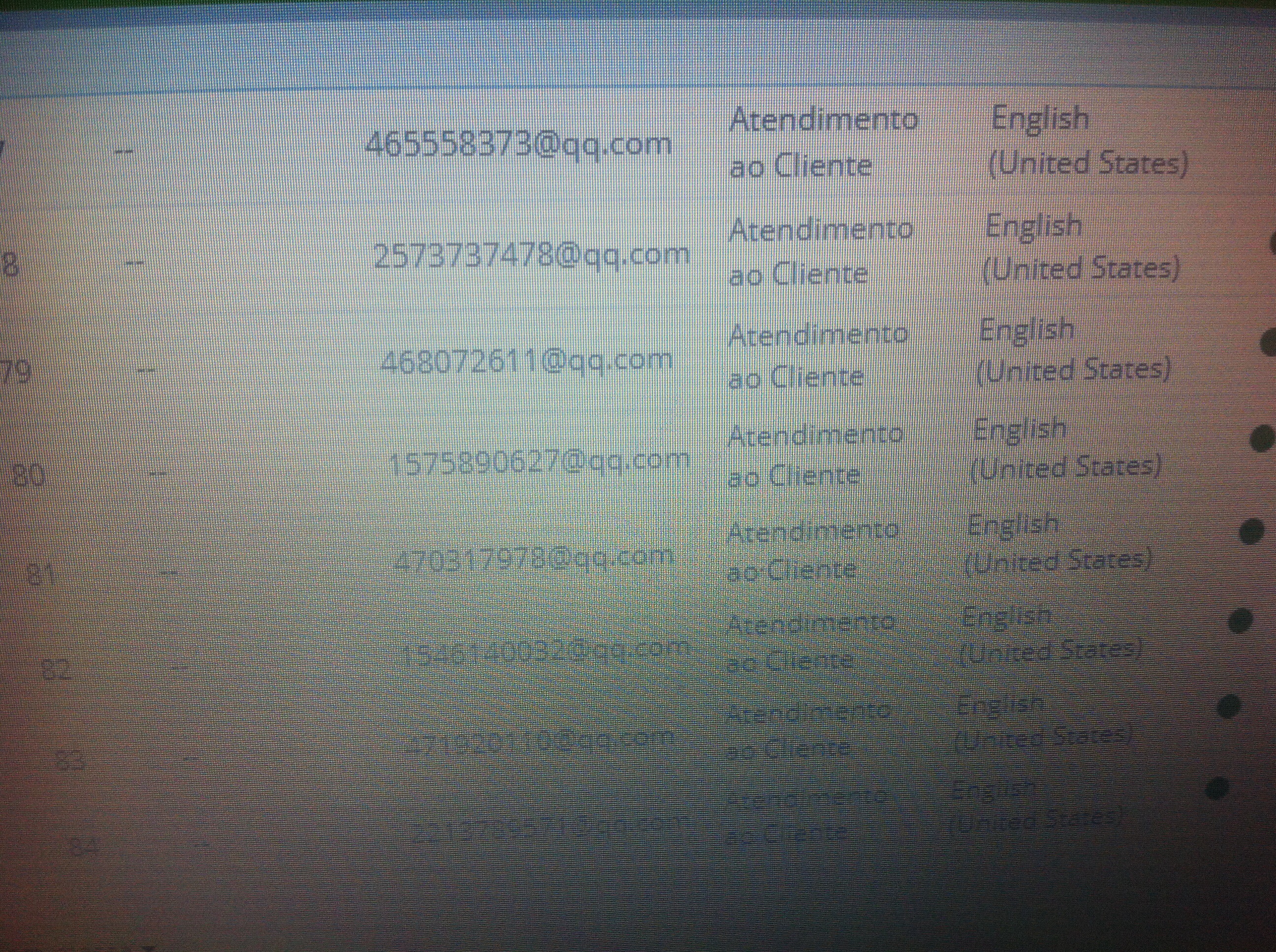 São dezenas de emails com um numero aleatorio na frente do @