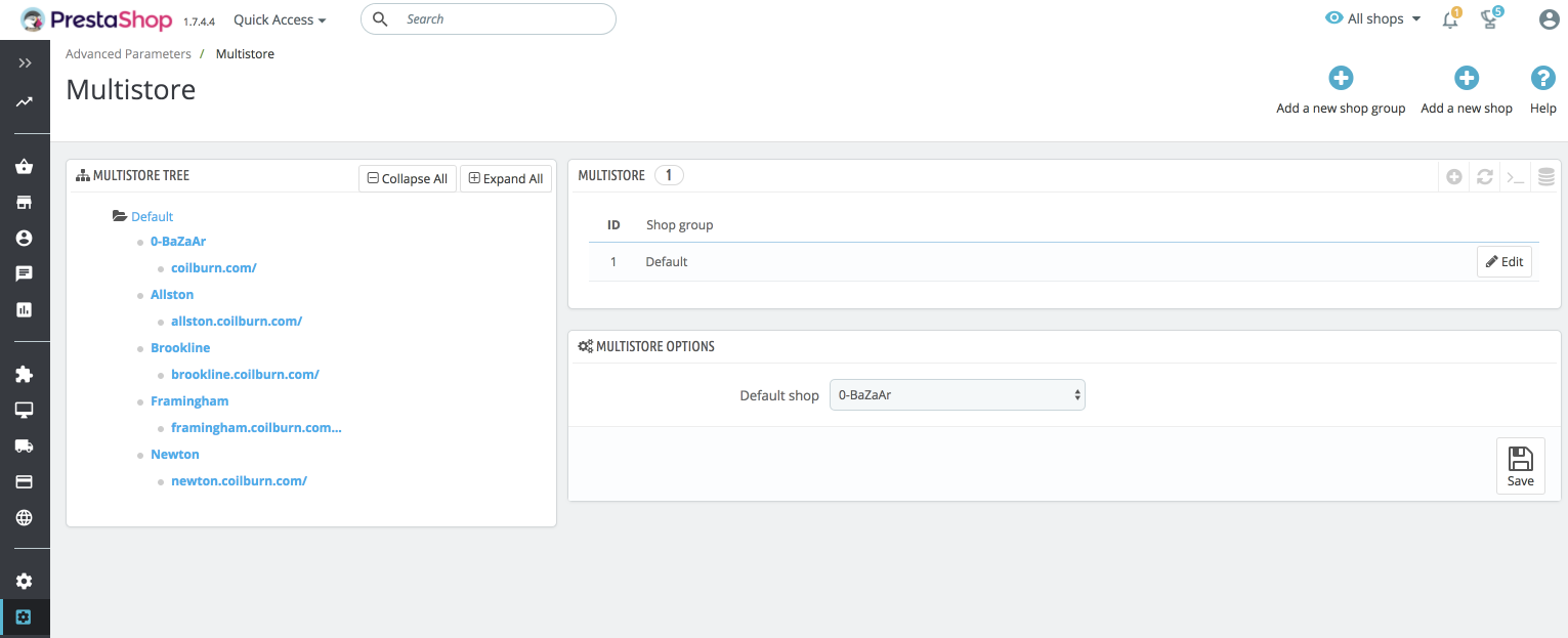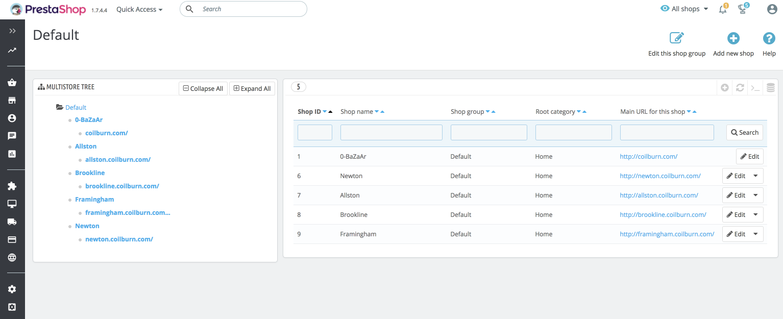 photomakes Posted November 17, 2018 Share Posted November 17, 2018 Hello. The first time I work with PrestaShop. The task is to make a multi store. Activated the multi store option and set up stores. Each store is created on different subdomains, and they have one engine. Trying to understand how the multi-store works, I ran into problems that put into a stupor from such a work of the engine. In the section "Advanced Parameters / Multistore" in the "MULTISTORE TREE" block, we got the following structure. Group "Default" – Store (in fact, is not a store, but an information platform, with links to stores) --- Store Url: exampleshop.com – Shop 1 --- Store Url 1 (shop1.exampleshop.com) – Shop 2 --- Store Url 2 (shop2.exampleshop.com) – Shop 3 --- Store Url 3 (shop3.exampleshop.com) – Shop 4 --- Store Url 4 (shop4.exampleshop.com) Scrn: 1. 2. That's what I don't understand. At the top right there is a drop down list with stores. Scrn: Opposite each store there is a button, clicking on which, should go to the main page of the store (to the store itself, and not to the admin area of the store). But, all these buttons on against the name of each store lead to the main URL. Also, in this list, which is shown when you click on the button on the upper right of the admin panel, when you click on the name of the store, in theory you should get into the admin panel of the selected store. Sometimes this happens, sometimes it even redirects to the admin panel from the URL of the store's subdomain. But in general, it is not clear in the admin for which store I am. When navigating the menu in the left block, the top right shows either the name of the selected store, or "All shops". How to make it so that in the block on the right above, when you click on the button of the selected store, the desired address of the store opens, and not the main URL? Does the transition to the admin of the selected store work correctly? Or have I encountered an error that can somehow be fixed? via: Google Translate Link to comment Share on other sites More sharing options...