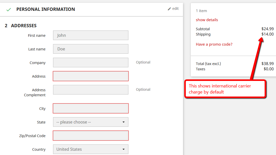 Mao9000 Posted November 20, 2018 Share Posted November 20, 2018 I have a multistore set up. B2B and B2C - In my B2C Shop I have two shipping carriers, Domestic (usa) International. Both carriers are based on cart cost. Carrier Options>Domestic carrier set as default The issue I have is that when a customer from USA adds product to cart it pulls the shipping cost from international carrier. Is there a way to set the Domestic as Default? V1.7.4.3 Or is there a better way to hide the shipping cost until customer enters their address and selects shipping method? Thanks for any help on this matter. it is driving me nuts Mark Link to comment Share on other sites More sharing options...