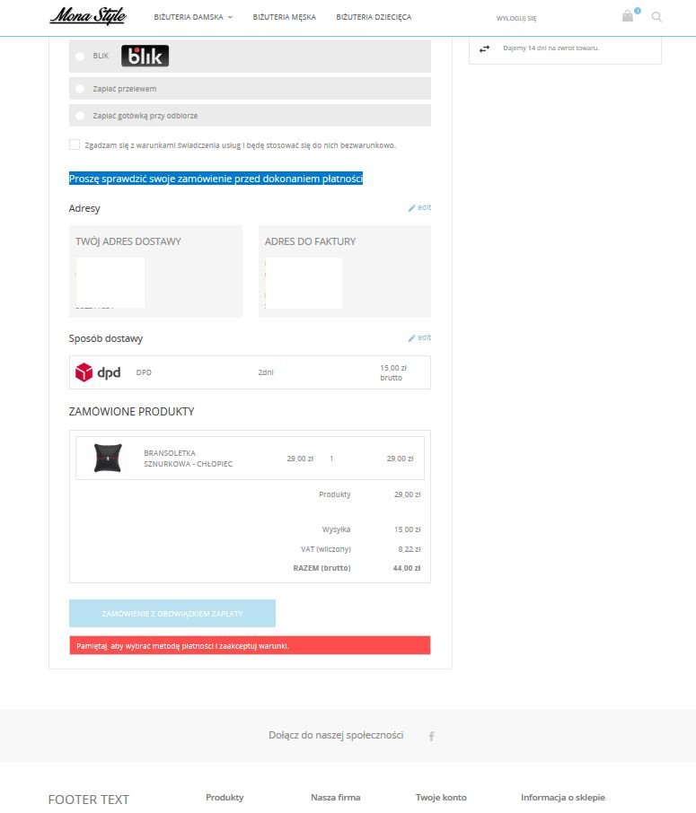 Przez swoją ciekawość zainstalowałem niepotrzebnie moduł Legal Compliance z marketu Presta. Po instalacji, na stornie zamówienia, po wybraniu sposobu dostawy pojawiły się zbędne elementy. Mianowicie chodzi o możliwość sprawdzenia danych "Proszę sprawdzić swoje zamówienie przed dokonaniem płatności" i czerwony pasek z informacją " Pamiętaj, aby wybrać metodę płatności i zaakceptuj warunki." (printscreen w załączniku).