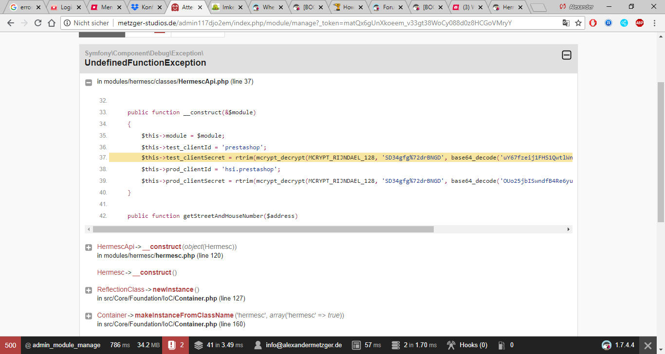 Nun komme ich nicht mehr in die Modul Sektion, wenn ich da drauf klicke lande ich sofort auf einer Error 500 Seite.
