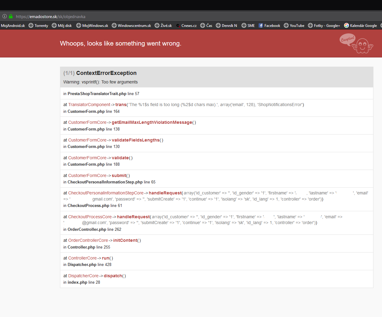 923913_1508425063 Posted November 26, 2018 Share Posted November 26, 2018 (edited) Zdravim, mam multiobchod PS 1.7.4.4 a prestalo mi fungovat nakup bez registracie. Pri vlozeni do kosika a ponuke vyplnit meno, priezvisko a mail pri stlaceni pokracovat, malo by nasledovat zadanie adresy namiesto toho presmeruje na uvodnu stranku s tym, ze skryje vsetky ceny na eshope. Viete mi poradit co by to mohlo byt? Pri objednavke cez registraciu ide vsetko ok. Debug mode vypisuje tuto hlasku. Edited November 26, 2018 by 923913_1508425063 (see edit history) Link to comment Share on other sites More sharing options...