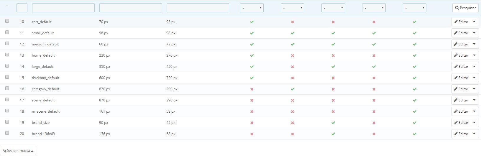 Em baixo, em "recriar Miniaturas" podes escolher o tamanho que queres recriar. se forem muitas imagens aconselho a escolher um tamanho de cada vez.