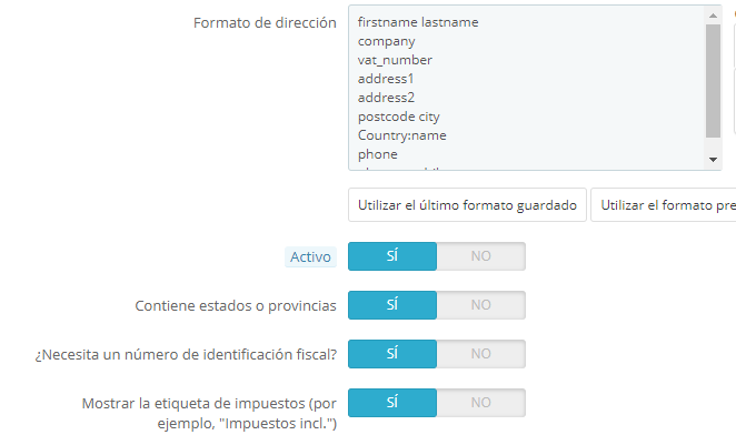 omuntane Posted November 28, 2018 Share Posted November 28, 2018 Hola, tengo instalado un prestashop versión 1.6.1.8. Tengo una incidencia en el alta de Direcciones... No me salen los países activos en el desplegable, y tampoco consigo que salga el campo "Provincia" a pesar de tener activada la opción en los países correspondientes Me podéis ayudar, seguro que debe ser algo relacionado con la configuración pero me lo he mirado y no veo que puede ser Saludos cordiales, Oriol Muntané Link to comment Share on other sites More sharing options...
