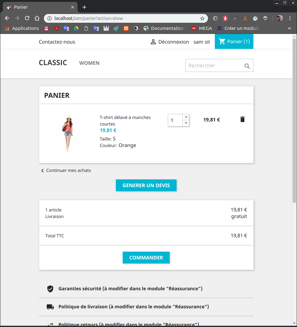 Samos Posted November 29, 2018 Share Posted November 29, 2018 Bonjour, Je suis en train de faire un module qui affiche un bouton similaire a celui du panier mais pour générer un devis en pdf. On m'a conseillé de faire un controller. Tout fonctionne et j'arrive a accéder a la page tpl demandée. Cependant j'aimerais afficher mon panier sur la page tpl. J'ai cru comprendre qu'il fallait envoyer certaines variables telles que cart de mon controller en php a mon template. J'ai donc plusieurs problèmes 😢 : Je ne sais pas comment envoyer ces variables et je ne sais pas comment afficher leur contenu. Je vous met mes fichiers pour que vous puissiez m’éclairer. task.php (sa_mod/controllers/front/task.php) : <?php class sa_modtaskModuleFrontController extends ModuleFrontController { public function __construct() { parent::__construct(); } public function init() { parent::init(); } public function initContent() { parent::initContent(); $this->context->smarty->assign('products', $this->context->cart->getProducts()); $this->setTemplate('module:sa_mod/views/templates/front/task.tpl'); } } task.tpl (sa_mod/views/templates/front/task.tpl) : Test : {$products} {foreach from=$products item=product name=products} {$product} {/foreach} Seul le "Test :" s'affiche. Merci pour votre aide.😁 Link to comment Share on other sites More sharing options...