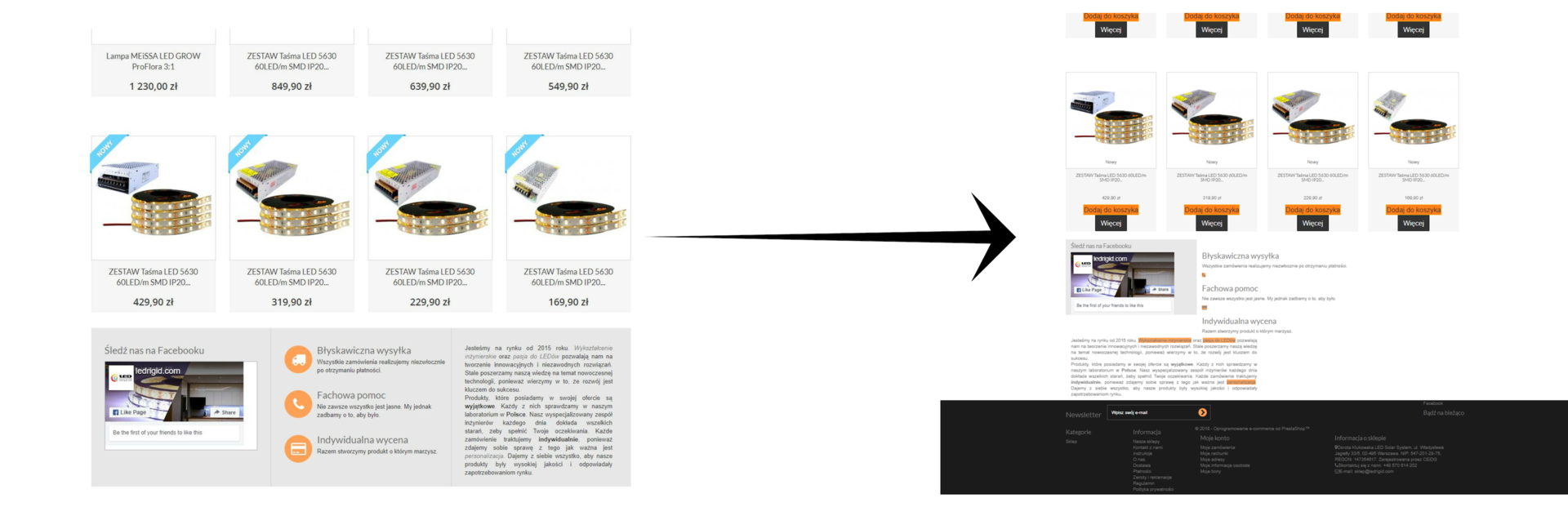 ecommerceLSS Posted December 4, 2018 Share Posted December 4, 2018 Witam, Mam duży problem z moim sklepem na Preście. Wczoraj koło 15 cały sklep się rozjechał. Stało się to po wyedytowaniu jednej klasy w plikach css. Proszę o pomoc i nakierowanie co może być przyczyną takiego problemu. Dodam, że wyedytowałem plik global.css z deafult-boostrap w ten sposób, że dodałem taką samą klasę z selektorem hover, by po najechaniu ikonka kciuka rosła i malała. Po usunięciu tych kilku linijek kodu sklep nie powrócił do stanu początkowego ( dodam, że wczytałem kopię zapasową pliku - wykonałem ją przed edycją ). W załącznikach przesyłam screena wyglądu sklepu przez zmianą i po zmianie. Proszę o pomoc w rozwiązaniu problemu. Pozdrawiam Cezary Przygodzki, LedSolarSystem Link to comment Share on other sites More sharing options...
