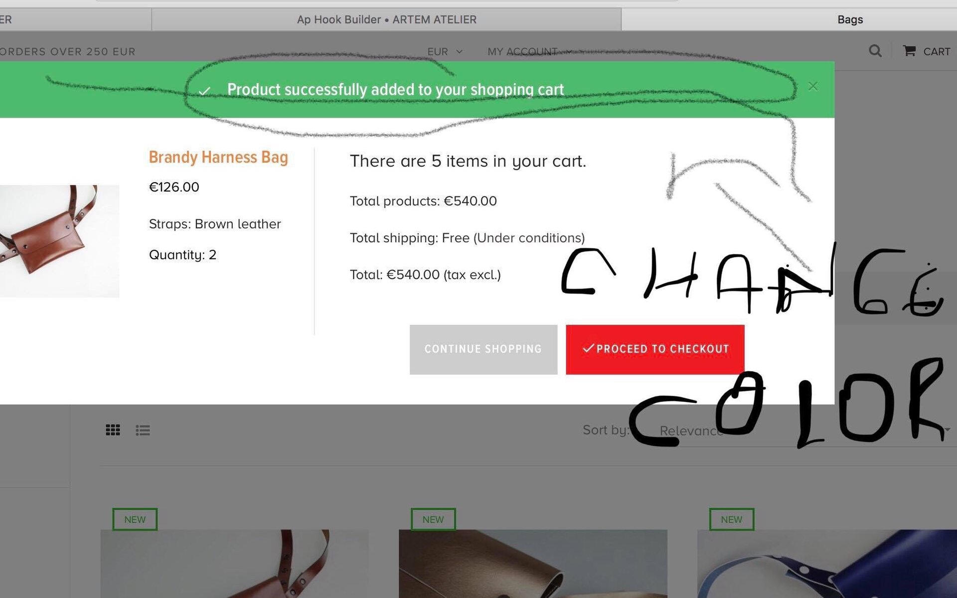 info.artematelier@gm Posted December 7, 2018 Share Posted December 7, 2018 Hello I am trying to change the colors to the buttons or boxes where is writing "new" above the products photo, "ad to cart" and proceed to check out" I succeed with the rest but not this one. I 've tried to do it from Ap Page Builder in themes live editor. Maybe i don't get which one is or it's not updating. Can someone advise which are the exact one and how to change it? Thank you. Link to comment Share on other sites More sharing options...